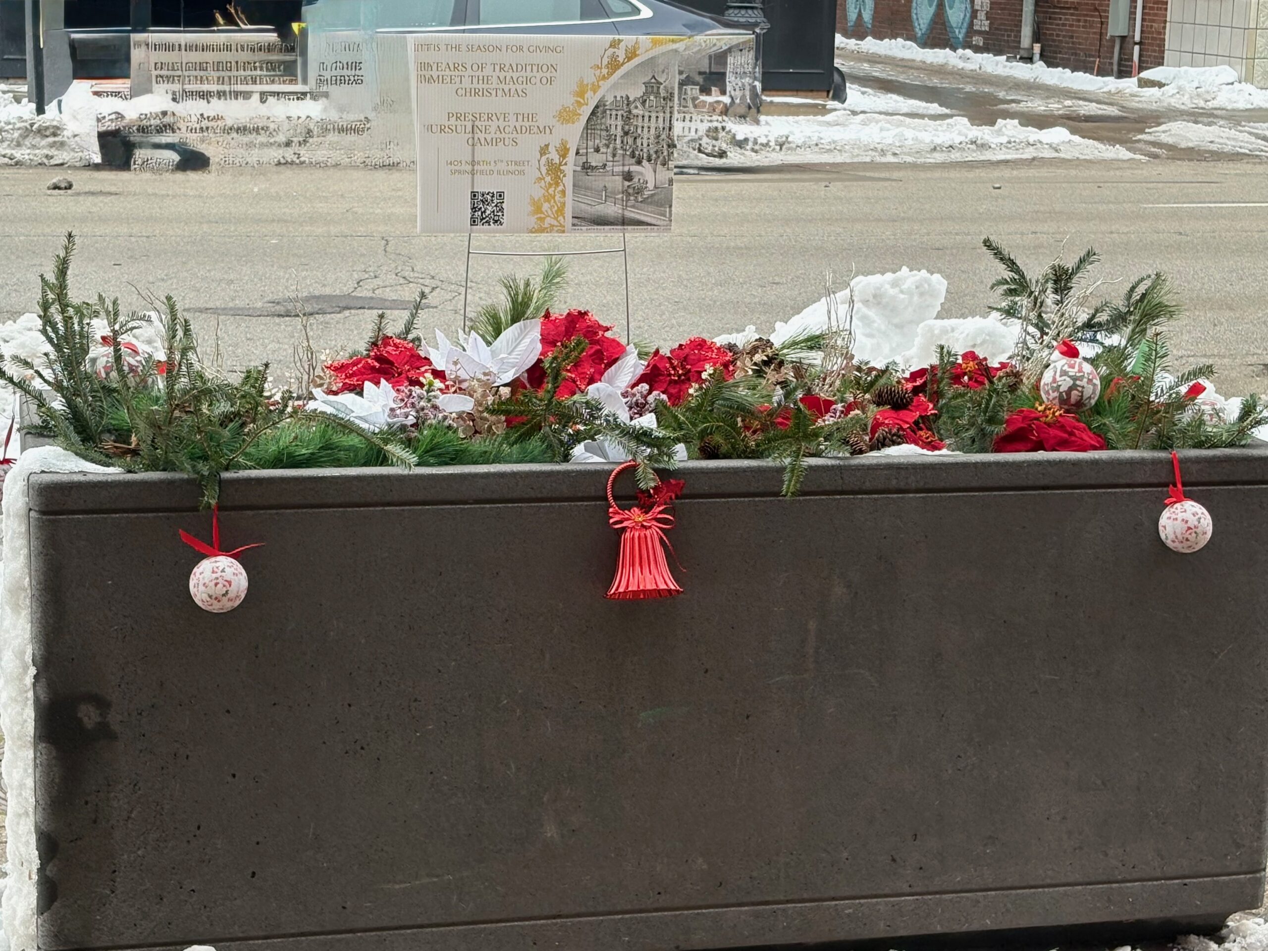 To bring a festive cheer to the downtown area, the city of Springfield launched its 2025 Holiday Planter Contest! Preservation, Inc. partnered with the Ursuline Academy Alumni Foundation to create a signature planter that blends Christmas charm with the history of the Ursuline Campus.